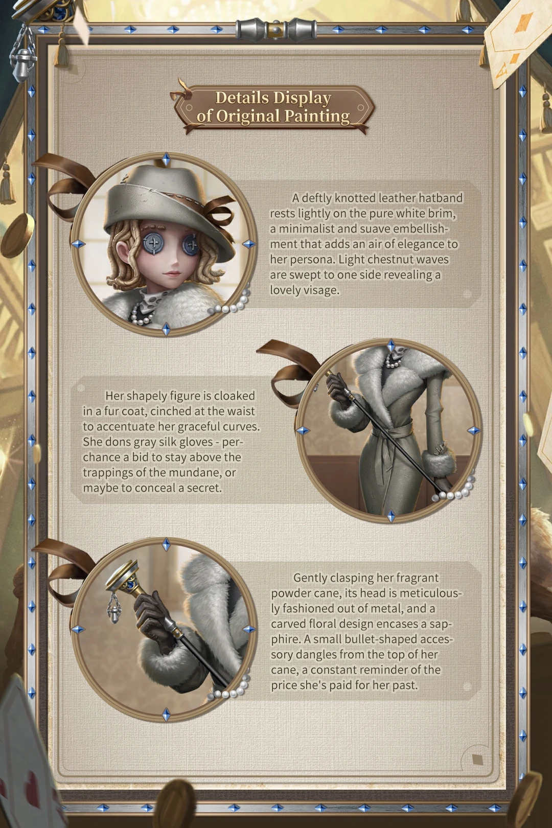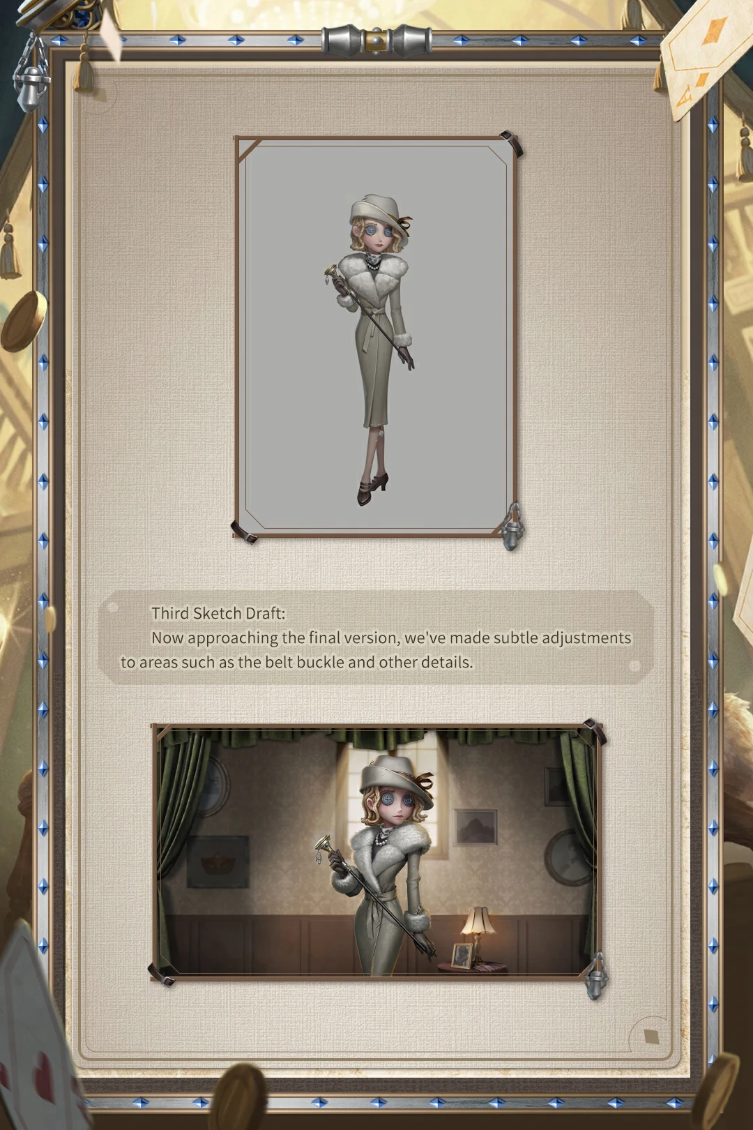 - Evelyn es la primera personaje que viene con música con su atuendo de rareza S, Marca de Presa