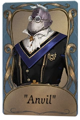 "Anvil" is a Reoccurring Time-Limited B-Tier Costume for the Hell Ember, Leo Beck. It could be purchased in the Illusion Hall with only Echoes for a limited time.