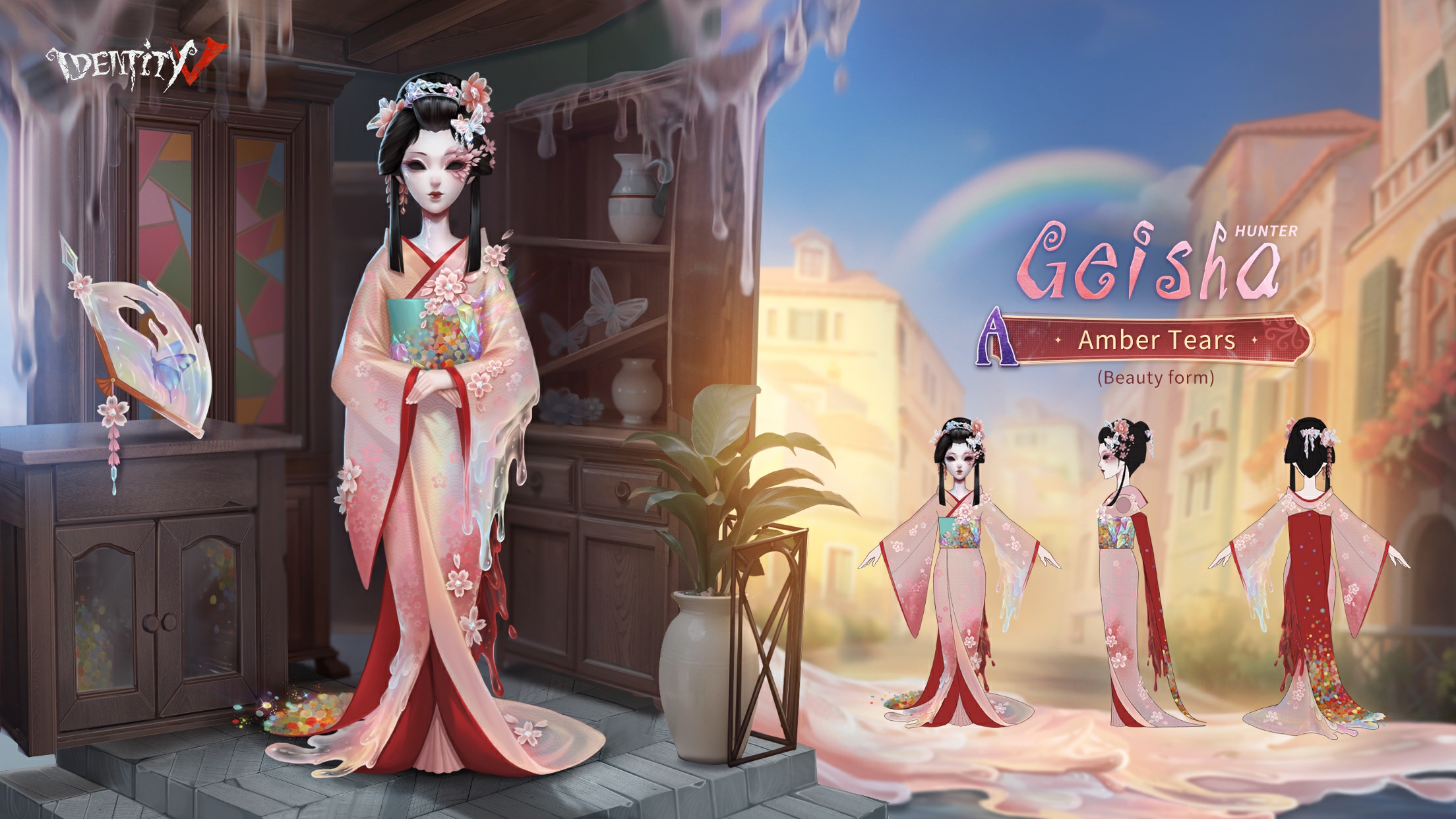 Amber Tears is an A-Tier Costume for the Geisha, Michiko. It was introduced in Season 37 Essence 3 and can currently be obtained from Memory Sphere - Previous Seasons.