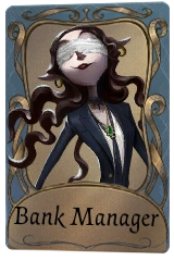 Branch manager of Wightlow Bank. She holds the only key to the vault but secretly abuses her authority for personal gain. Fearing discovery by head office auditors, she became an accomplice to the robbers.[1]