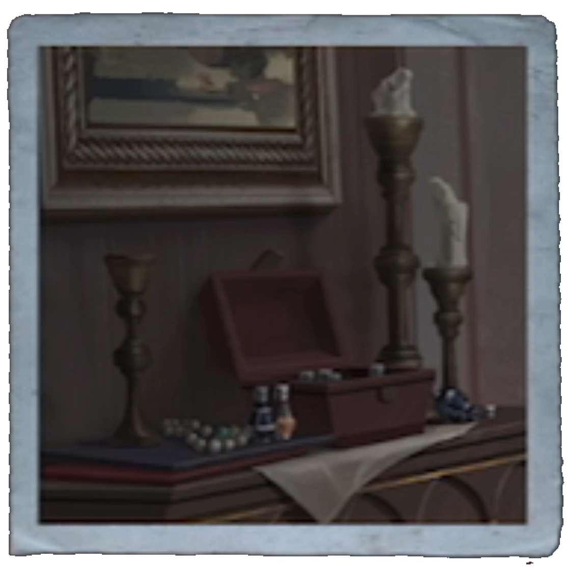 | (He turns the hidden switch in the table, and a board game setup appears.) | |