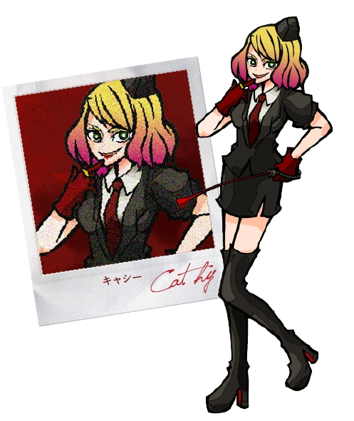 "A female guard who claims to be the Executioner. She speaks with a smile while delivering cruel punishments, she is a sadist deep down." - Catherine Ward Introduction Poster (Twitter)