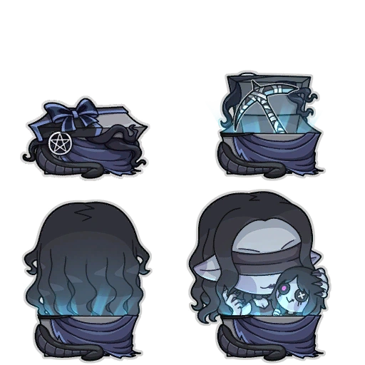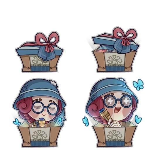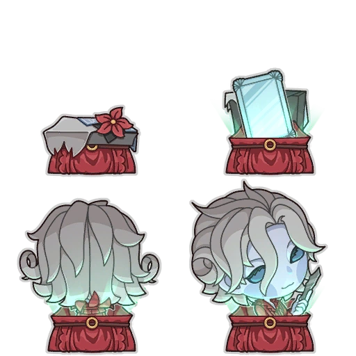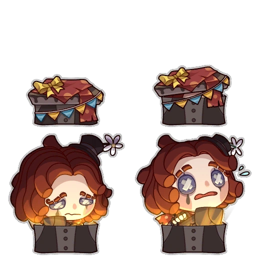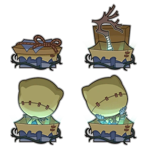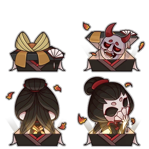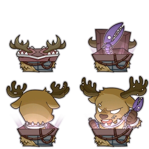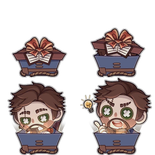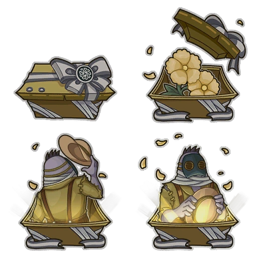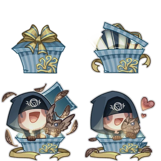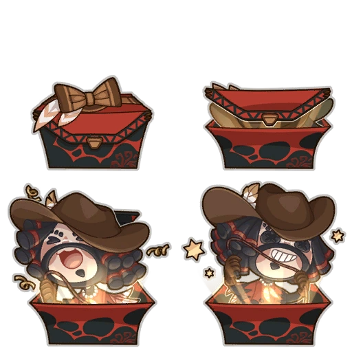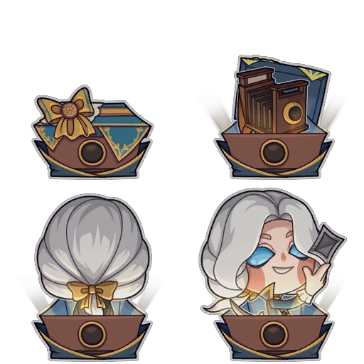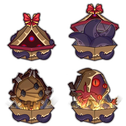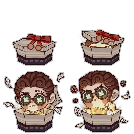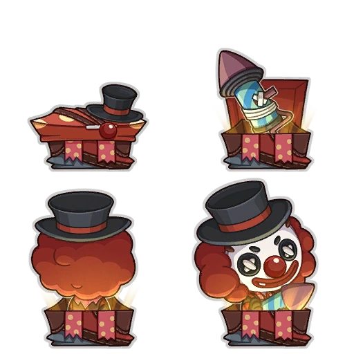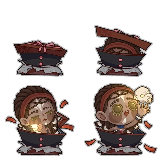 It shows the character coming out of a present box, designed after their costume (or in rare occasions based on their items). When they pop out, they are surrounded by items relating to their character.