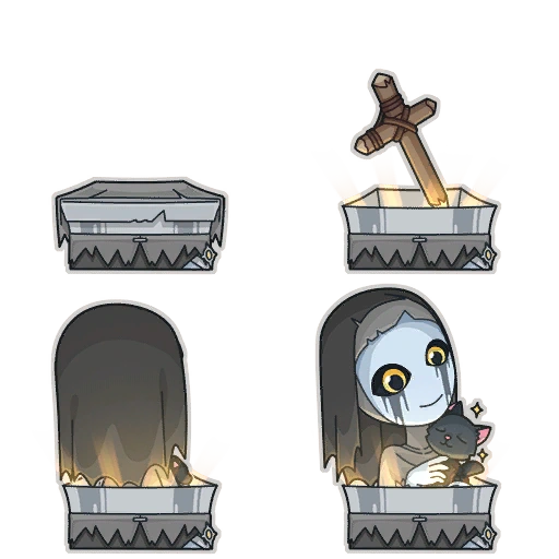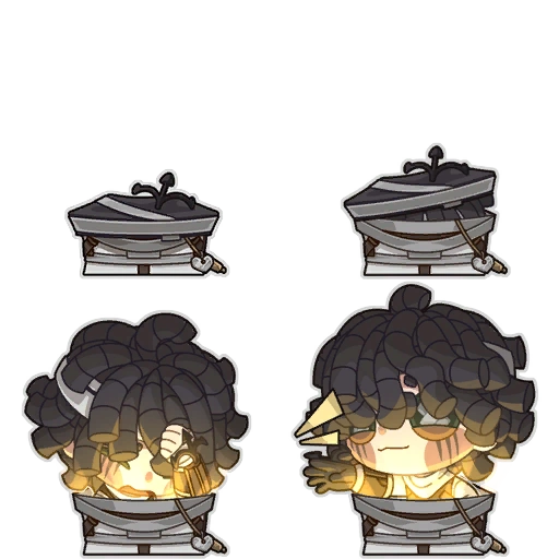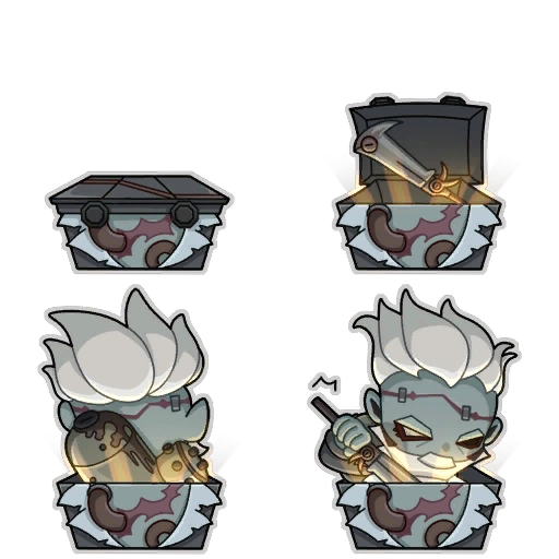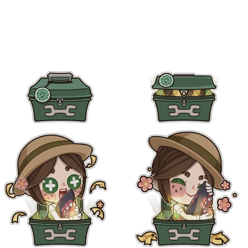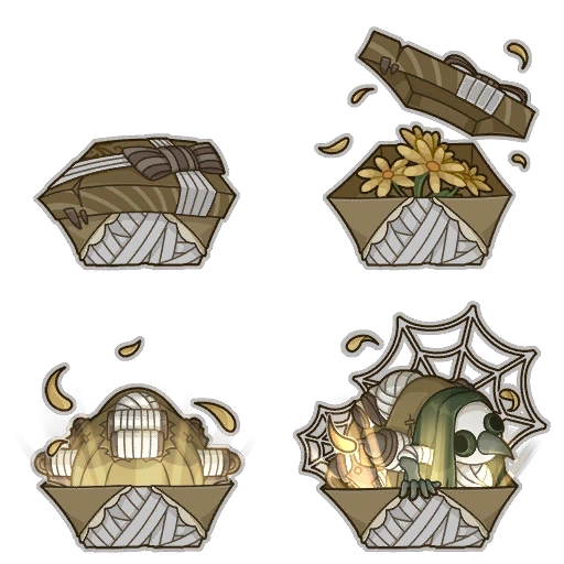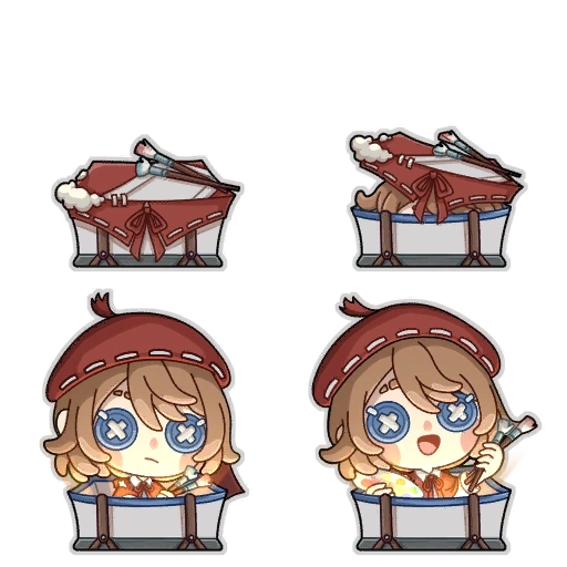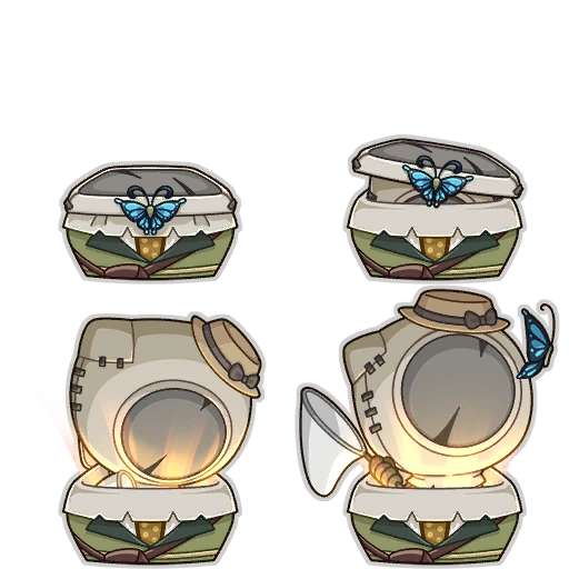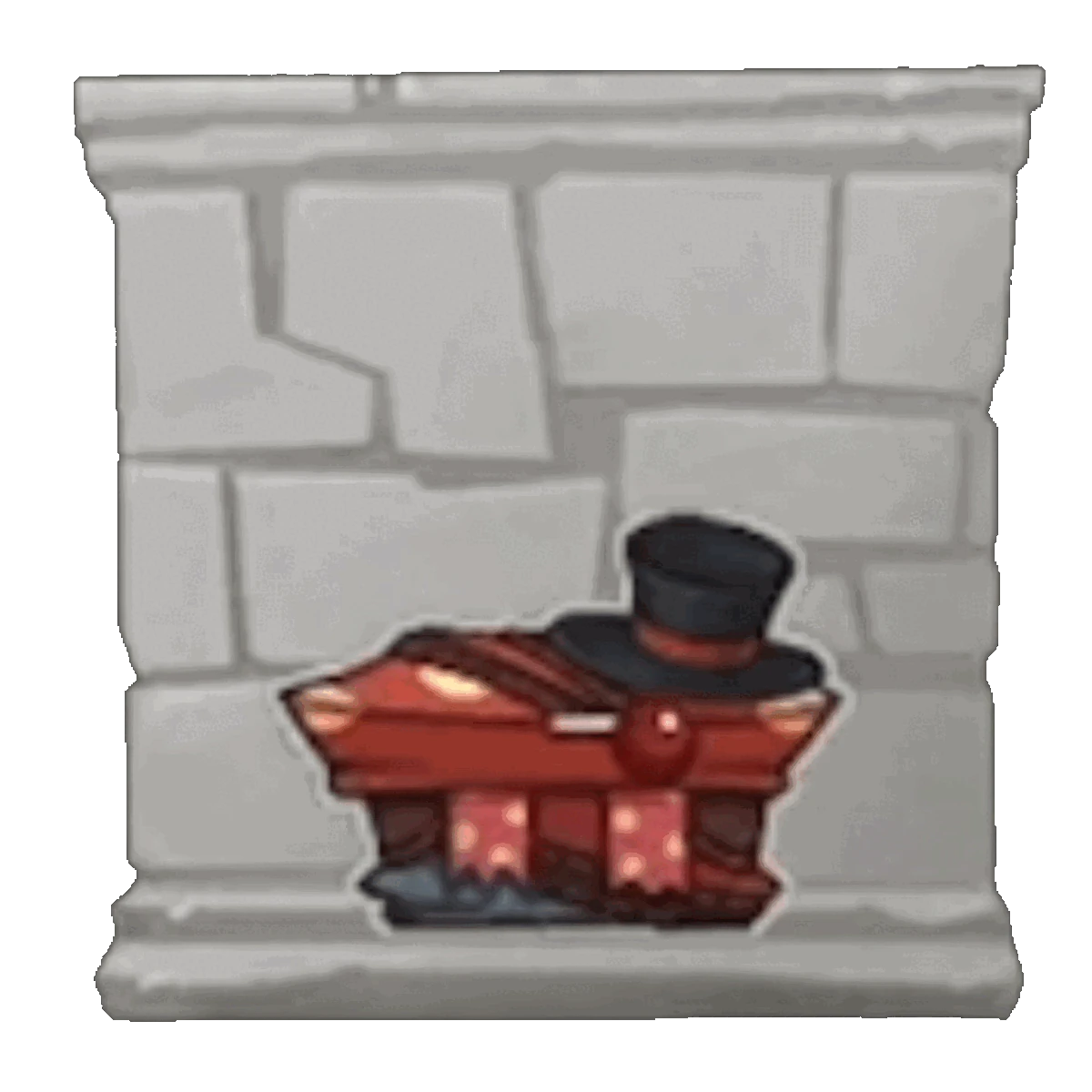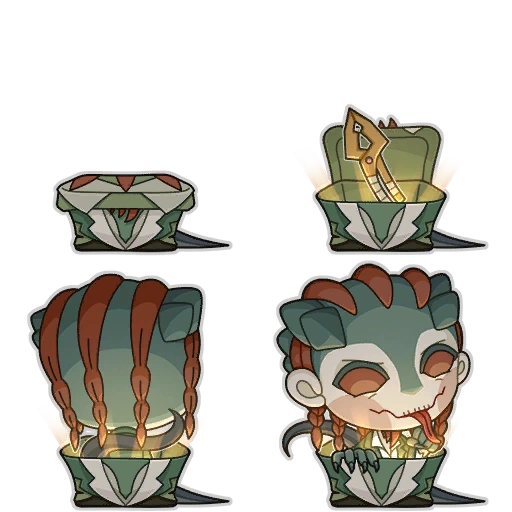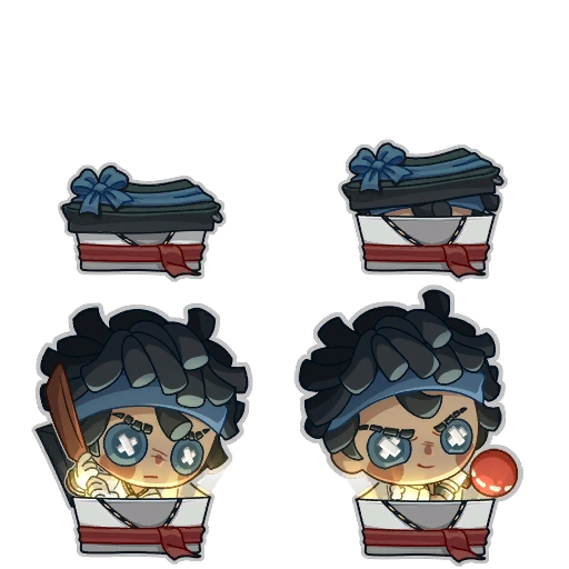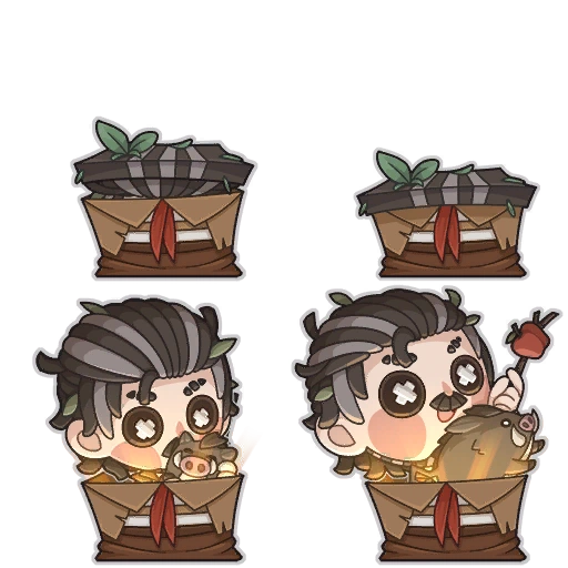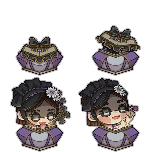 It shows the character coming out of a present box, designed after their costume (or in rare occasions based on their items). When they pop out, they are surrounded by items relating to their character.