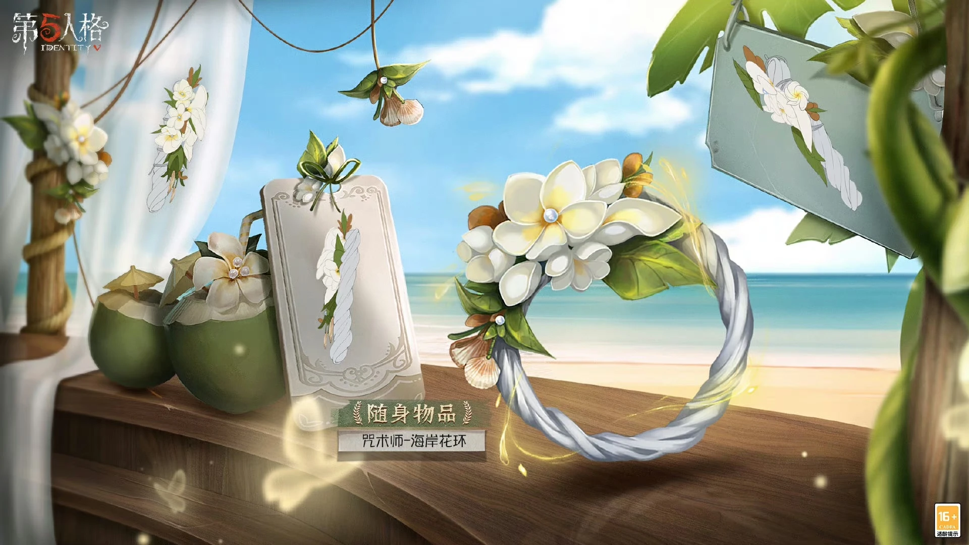 The Enchantress - Coastal Garland is a garland made by the enchantress herself. It is mainly composed of white and yellow frangipani flowers, and is also dotted with bright pearls and shells that can be seen everywhere on the beach. This combination can be felt at a glance. To the feeling of looking out at the sea under the coconut trees. The yellow halo wraps around the garland, and with the movement, the yellow petals will fall down. When the power is stimulated, a huge plumeria will bloom, making people feel the mysterious power of the island. It is said that the enchantress prepared it to give to the distinguished guest and invited him to enjoy the bright summer on the beach of the island.