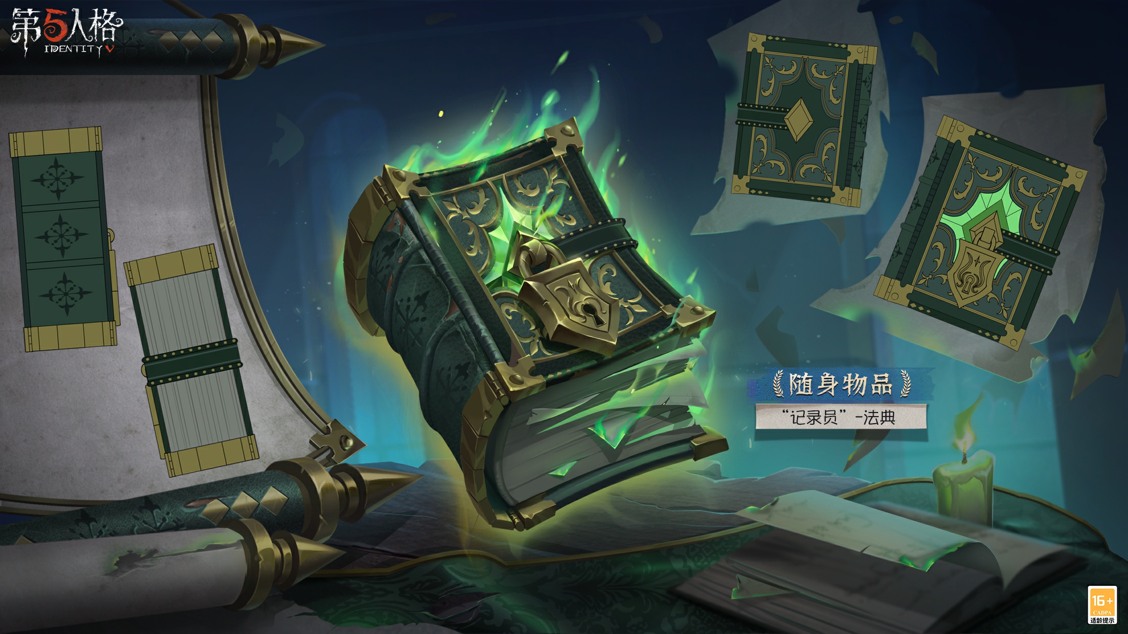[A Accessory] Clerk - Codex is a very heavy-looking book, which symbolizes the power of wisdom and knowledge. The big lock on the cover and the faint green light on the pages make people curious about what is written inside.