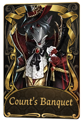 Count's Banquet is Reoccurring Time-Limited S-Tier Costume for The Ripper, Jack. It was originally introduced to the Illusion Hall with the Accessory Banquet Cup for a limited time in October 2019 as part of the "Old Castle Feast" package.