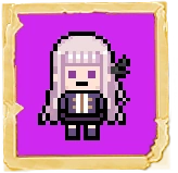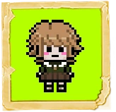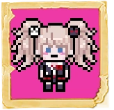 Danganronpa Crossover Portrait is a series of limited C-Tier portraits that were introduced during Danganronpa Crossover Part I (Season 11 Essence 2), Part II (Season 14 Essence 1), and Part III (Season 27 Essence 3). Each portrait is a pixelated image depicting a character from the Danganronpa series, with a brightly colored solid background.
