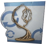 The furniture is a tree with its branches twisted to have an empty space for a crystal to sit. The tree is on top of a small round wooden platform.