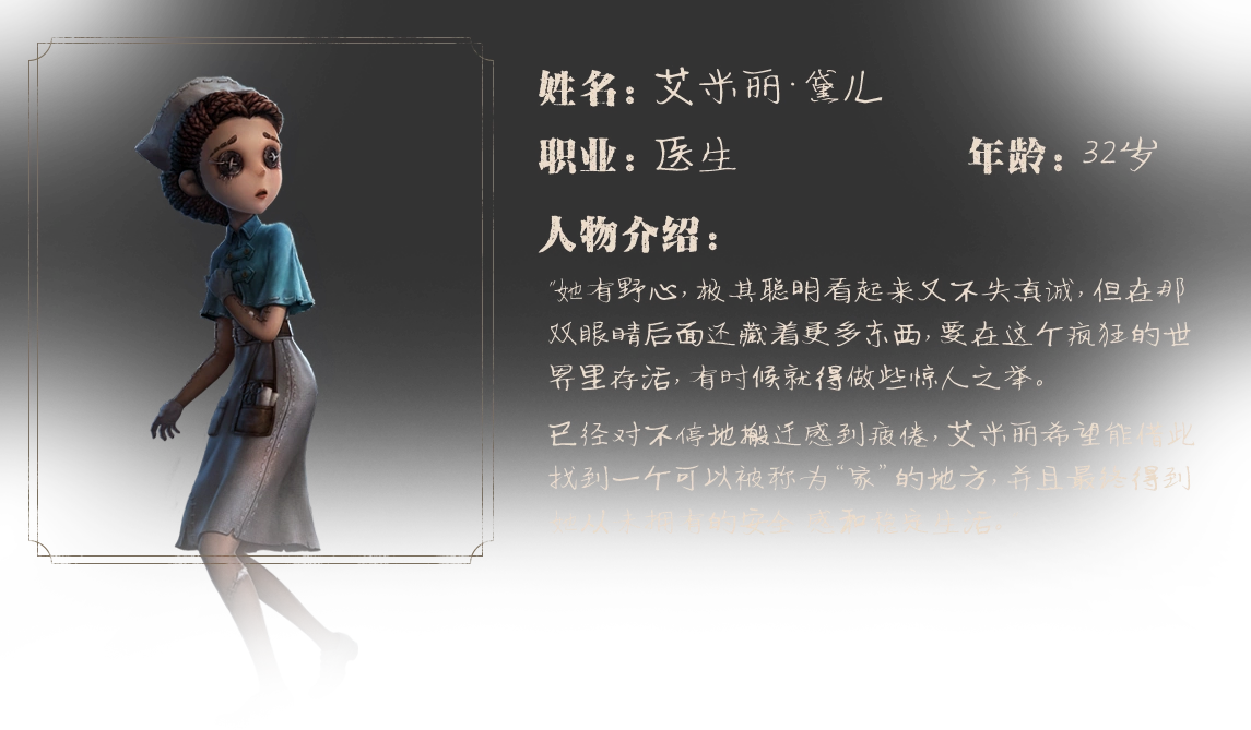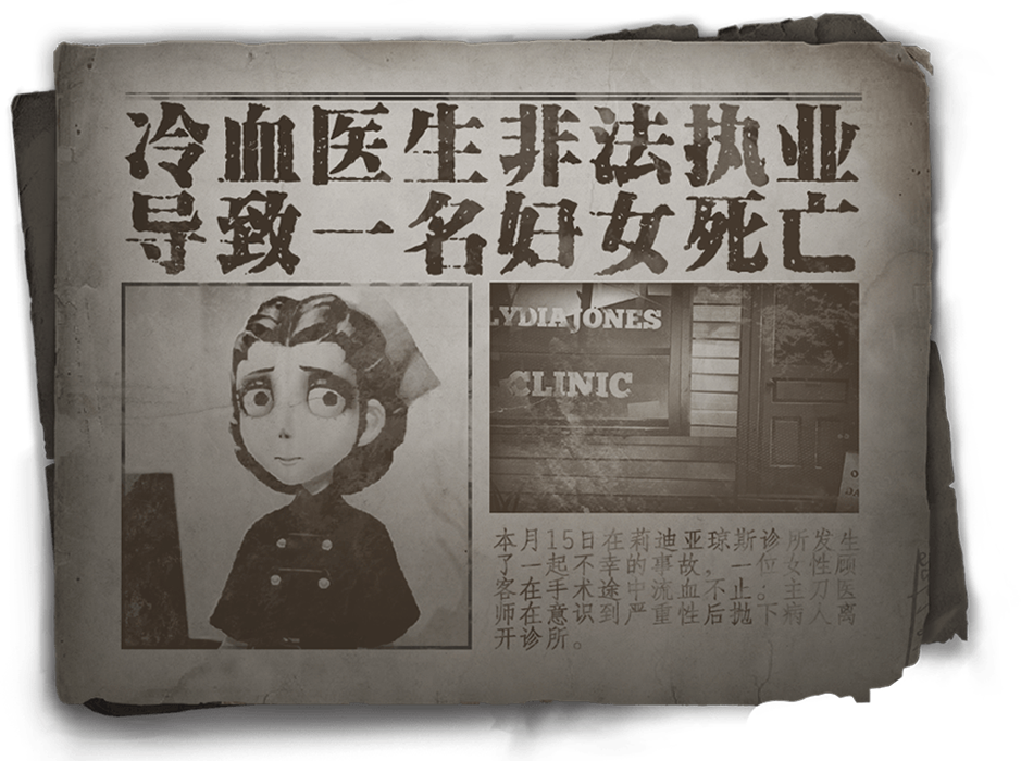Emily Dyer, also known as the Doctor and formerly known as Lydia Jones, is one of the 50 playable Survivors added to Identity V.