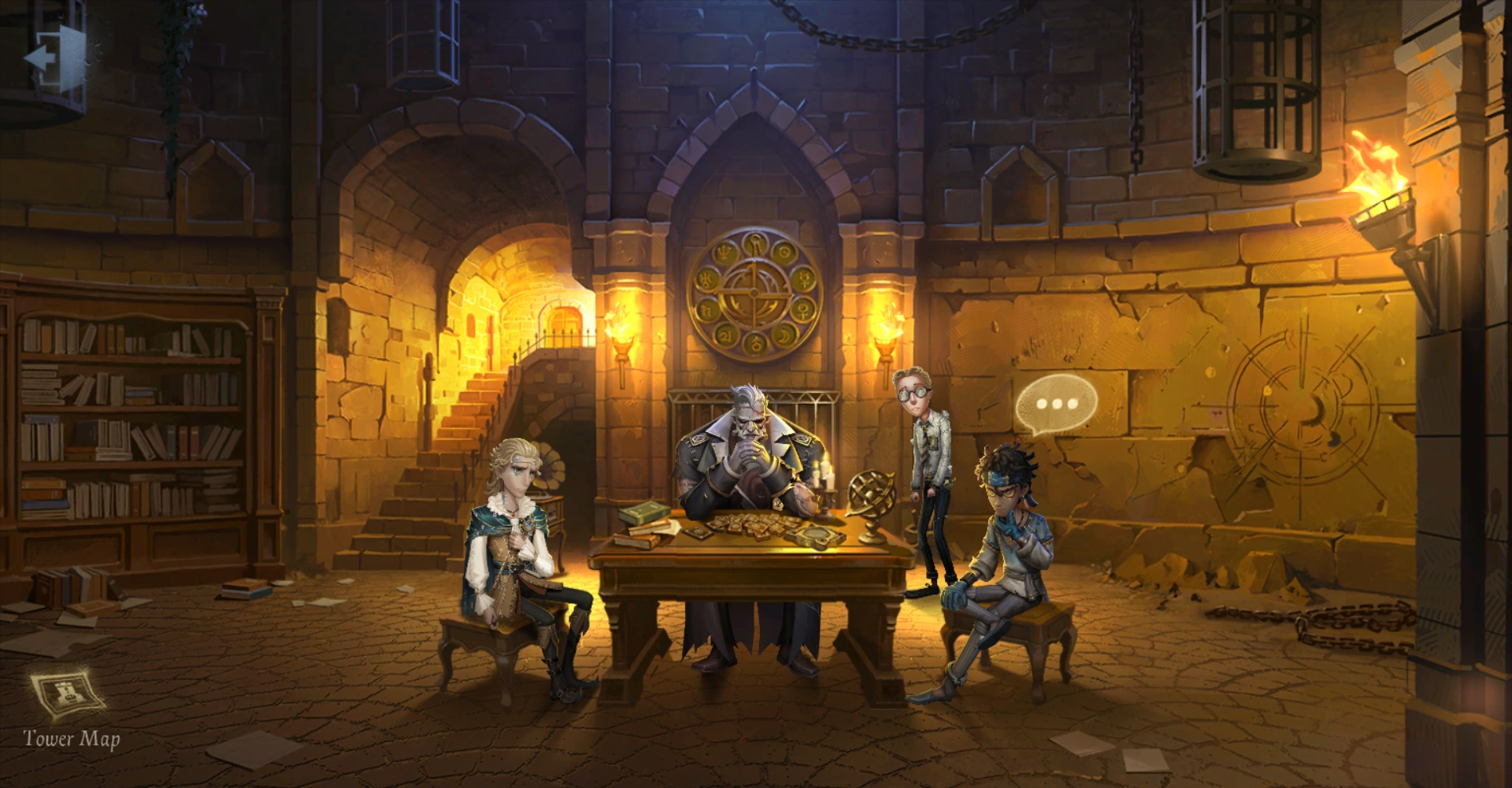 | (The site of the divination ceremony was a shadowy and ancient tower, situated several dozen miles from Wightlow.) (In the center of the hall, an antique gramophone is tarnished in brass hummed soft, calming melodies from it's needle's point.) (A few early arrivals, in pairs or small groups, passed the time with light-hearted conversation and games.) | |||