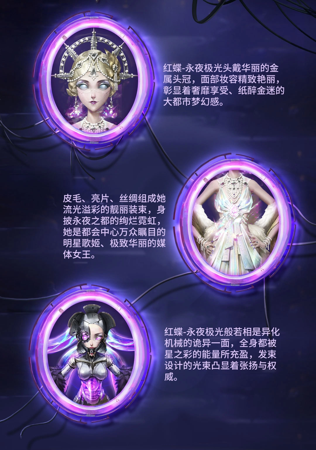 "Eternal Aurora" played by Geisha is a fashion superstar in the eyes of the public, and secretly controls the media channels. Therefore, the concept design should show the magnificence of entertainment stars on one side, and the weird power of media queen on the other.