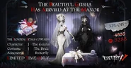 Falling Butterfly is an A-Tier Accessory for the Geisha, Michiko. It was introduced as part of the Package - Floating Petals along with its costume The Bride between August 1st 2018 to August 15th 2018. It is currently obtainable in Illusion Hall.