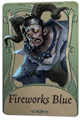 Fireworks Blue is a C-Tier Costume for the "Goatman", Jeffrey Bonavita. It was introduced in the Season 36 Rank Treasure and has been a recurring reward in Rank Treasures since then.