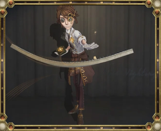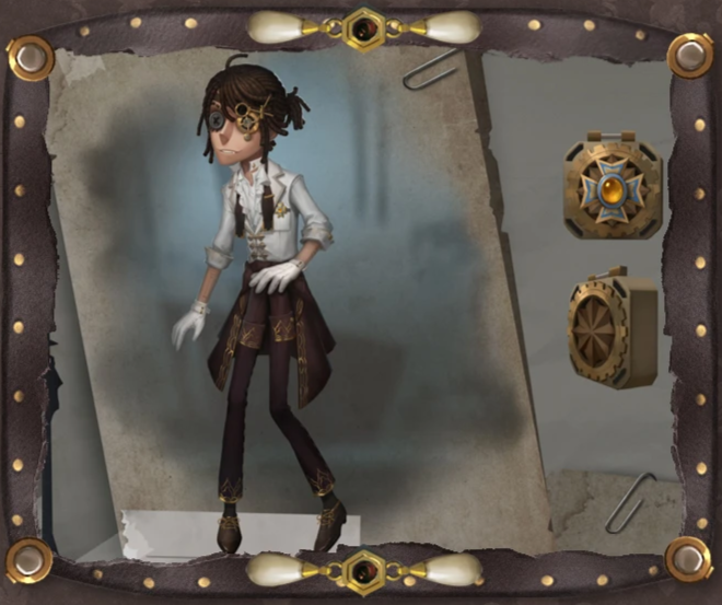 The "prisoner" gathered his hair back into a small ponytail, which was clean and neat. He wears retro mechanical glasses, with the lenses covered with gears and other decorative objects, echoing his love for invention. A pair of snow-white gloves facilitates the processing and production of various mechanical parts. He was smiling, obviously looking forward to the day when he would graduate and start a new stage in his life.
