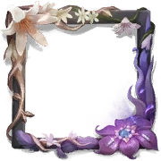 The frame shows white Tuberose flowers blooming in the top left corner and a purple flower resembling the flower on the Costume Sway in the bottom right corner.