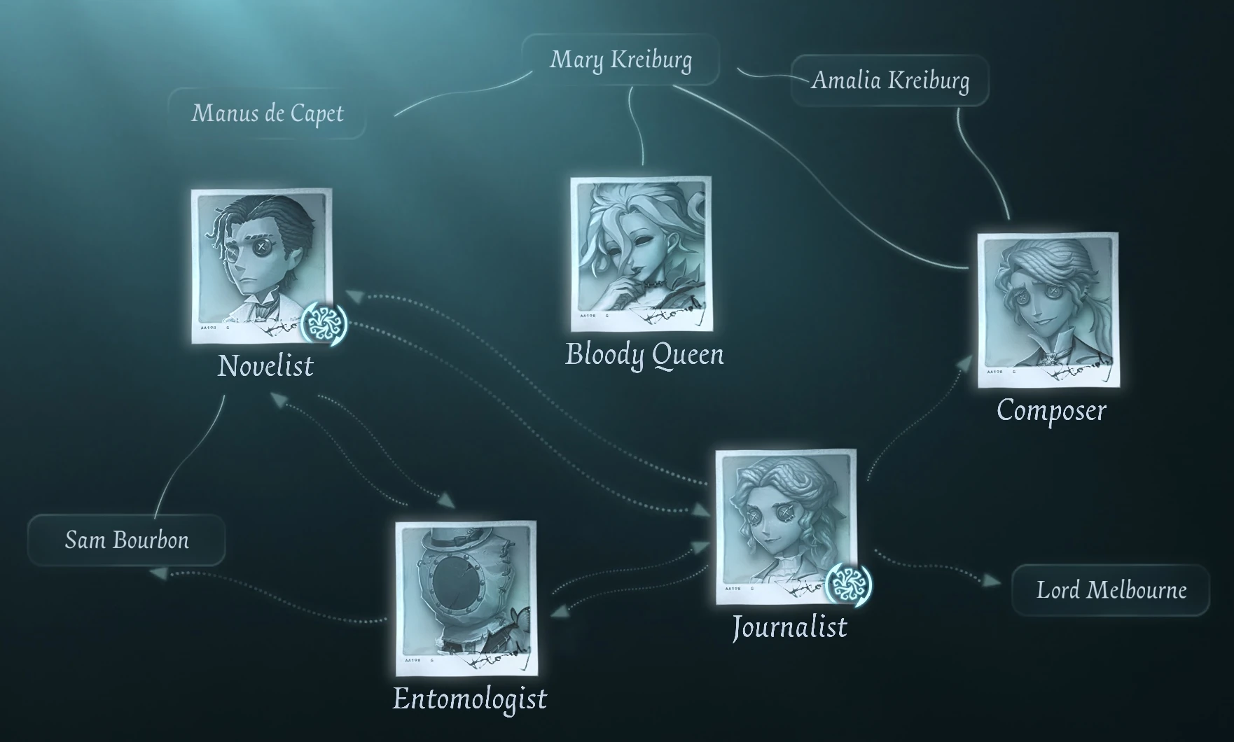 - ↑ 26.0 26.1 26.2 26.3 It is revealed in Grave Keeper's Character Relations Web that Andrew buried Antonio, The Will Brothers and Sangria. However, it is worth noting that Andrew is one of the Manor's "staff", more specifically, a uniquely tasked participant, as revealed in Violinist's 2023 Letter and Grave Keeper's 2025 Letter, and he also carried Antonio away for burial when Antonio lost control during the First Stage of the experiment. Moreover, it is confirmed that the deaths of the buried participants were actually caused by the Manor using drugged consumables in order to make the participants lose their composure, and the burials were a part of Andrew's given objectives.