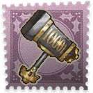 The accessory is a miniature iron hammer with golden accents. The hammer has a unique, squared shape to the head with one end being larger than the other. The smaller end of the head is decorated with a golden gear. The rims of the hammer's head have a ring of gold on each end as well as "1000t" being written on both sides of the head.