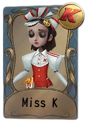 Miss K is a B-Tier costume for the Perfumer, Vera Nair. It was obtainable from the Chinese Server exclusive KFC Crossover by completing Event Quest 8: Complete 20 Quick Matches, Rank Matches, Duo Hunters or Tarot Matches (Deduction Points must be no less than 2000).