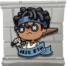 The graffiti depicts a stylized version of the character's head and torso, with a colored scroll beneath them containing a phrase demonstrating their personality.