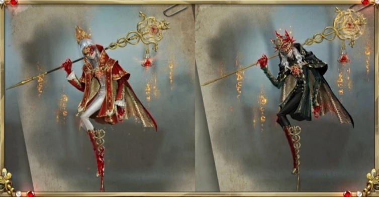 The overall costume is made of leather or heavy velvet texture. Based on the mystical interpretation, it is decorated with a large number of alchemical symbols, minerals, words, etc., such as the fire element mark with . The leg stilts use entwining flower and snake elements (same as the Ouroboros concept).