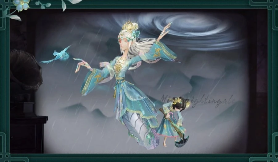 Based on Antiquarian's character and her hand-held item, we chose Jingwei from the myths and designed it with the team's colours in mind. We focused on adding bird elements to the skin and how they become her bare feet to embody the theme of transforming creatures. Her flute becomes a tree branch used by Jingwei to reclaim the sea. In order to further highlight the team, we added their logo to her waist, and added an interaction between Antiquarian and four birds in the costume's showroom interface.