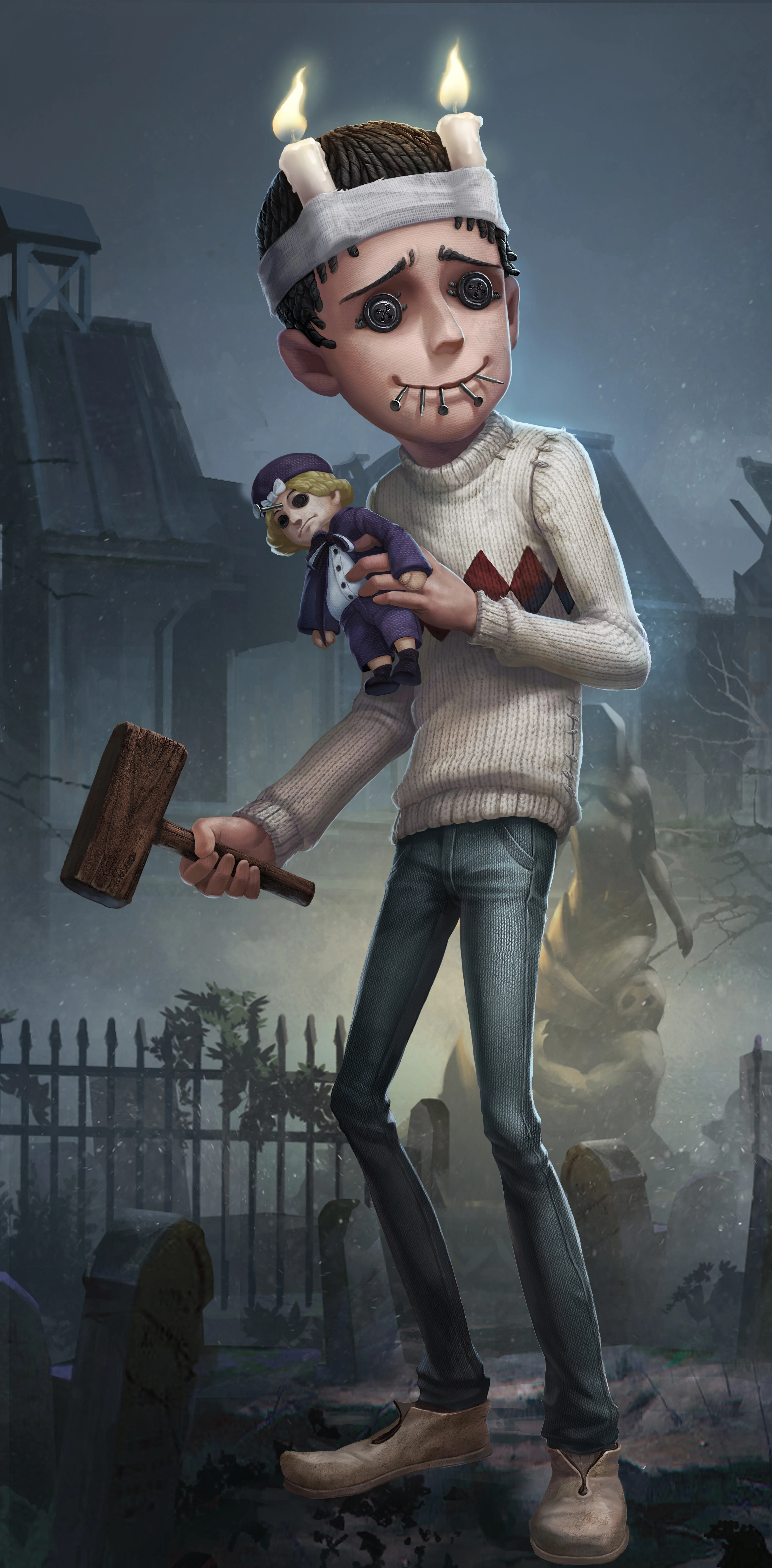 Like the unknown Lucky Guy, Souichi is an existence that is not taken seriously at home or at school, but behind the scenes, he is a powerful boy with the ability to predict and curse. He can cast spells on dolls to let his classmates bury themselves in the soil and hibernate, and realize the terrible and terrifying thoughts in his mind. This "Identity V" linked fashion also truly restores Souichi's classic look. His head is wrapped in white gauze, burning candles are stuffed near his temples on both sides, and his mouth shouting about the iconic nails, which made people shudder. His hair was greasy, his complexion was pale, and there were thick dark circles around his eyes. At first glance, he looked like an unpopular and lonely, gloomy boy. He was very cautious in his movements. He held the purple doll in his left hand and a hammer in his right hand, ready to hide himself in any dark corner at any time.