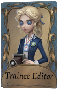 Trainee Editor is a B-Tier Costume for the Journalist, Alice DeRoss. It was introduced in Season 33 Essence 1 and is currently available in Memory Sphere - Previous Seasons.