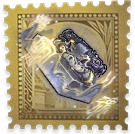 A black box with a greyish carved base, a old-black dragoon is sitting in top of it guarding a key hole. There are illumination of birds flying, mountains and several symbols seemingly protecting the box.
